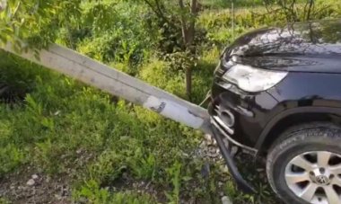 造车辆及电线杆受损的交通变乱,致使车辆撞坏阶梯右侧电线杆。